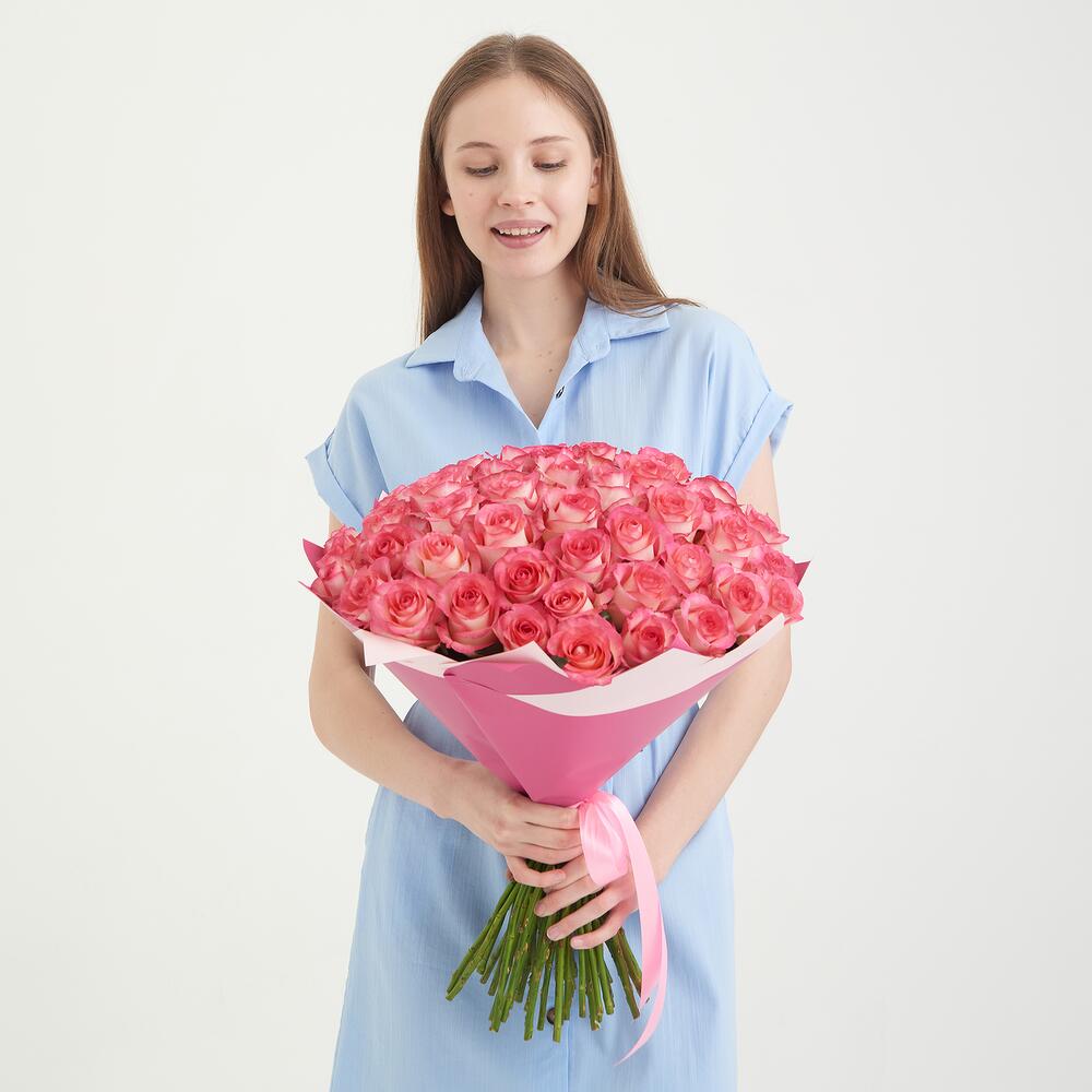 Букет из необыкновенной розы бело-розового цвета сорта Джумилия. Яркая и красочная роза обязательно удивит ваших близких.